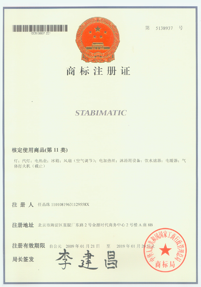 STABIMATIC商标注册证书